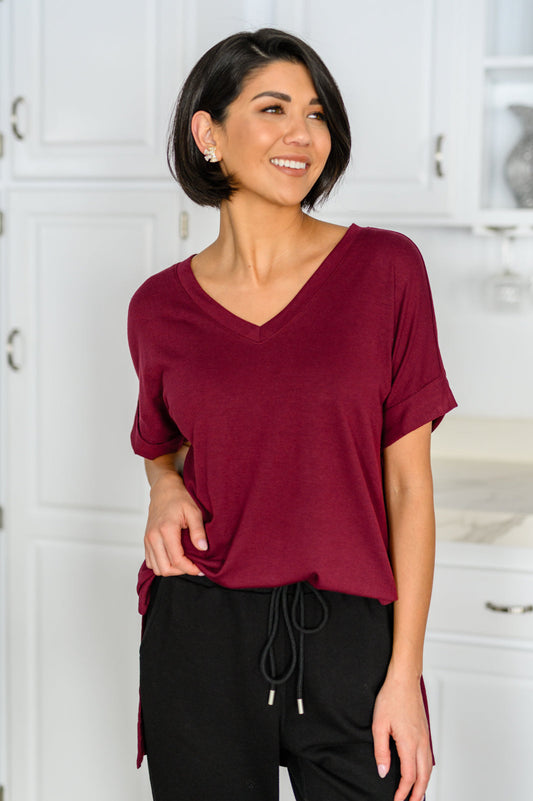 Let The Days Pass By Short Sleeve Top in Burgundy